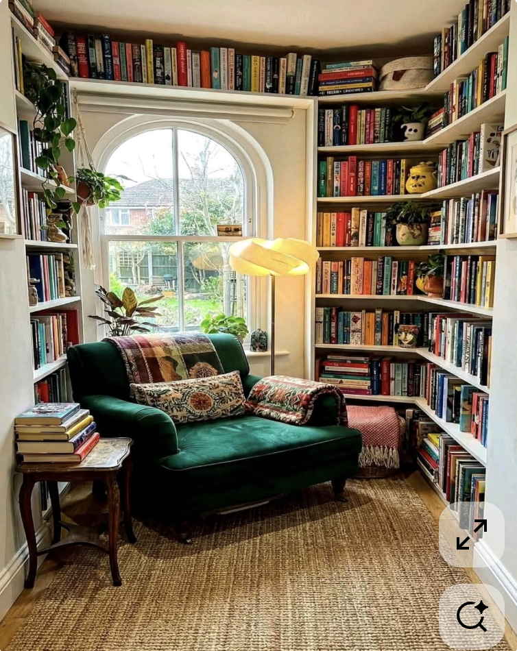 Literally my dream. Like…literally. I want that big armchair so I can sit crosslegged and balance laptop on my lap, and sit quietly and work. If the Universe delivers this for me, I pinky-swear I will write more and read more.